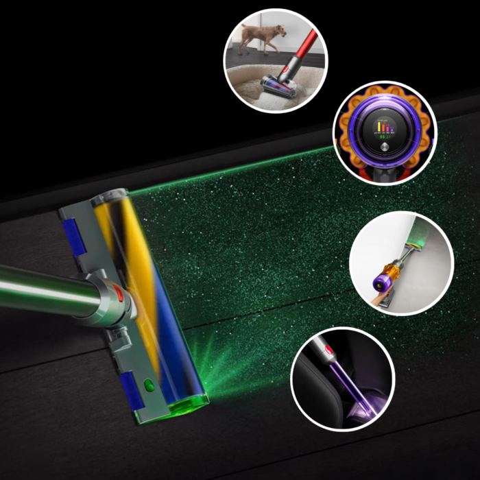 La aspiradora inalámbrica más compacta e inteligente de Dyson. Con iluminación láser.