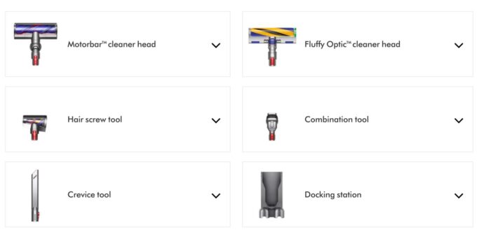 5 accesorios diseñados por Dyson para una limpieza versátil.