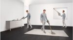 Especial para suelos duros. El cepillo de 25 cm de ancho con un perfil bajo para caber bajo los muebles.